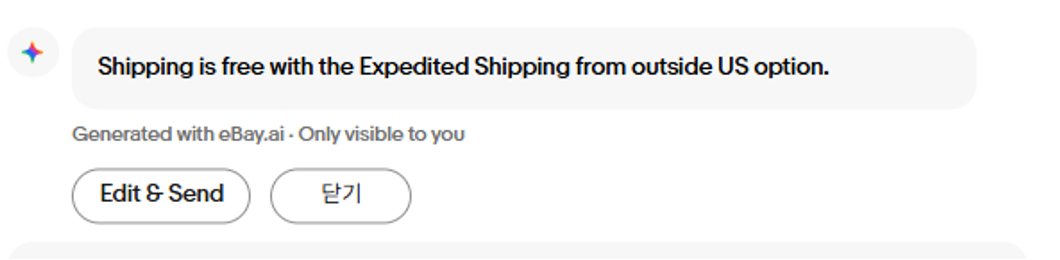提案された返信は、実際の商品のItem specifics(商品詳細)や配送情報に基づいて生成されます。セラーは返信案を確認・編集して送信することも、独自にメッセージを作成することもできます。