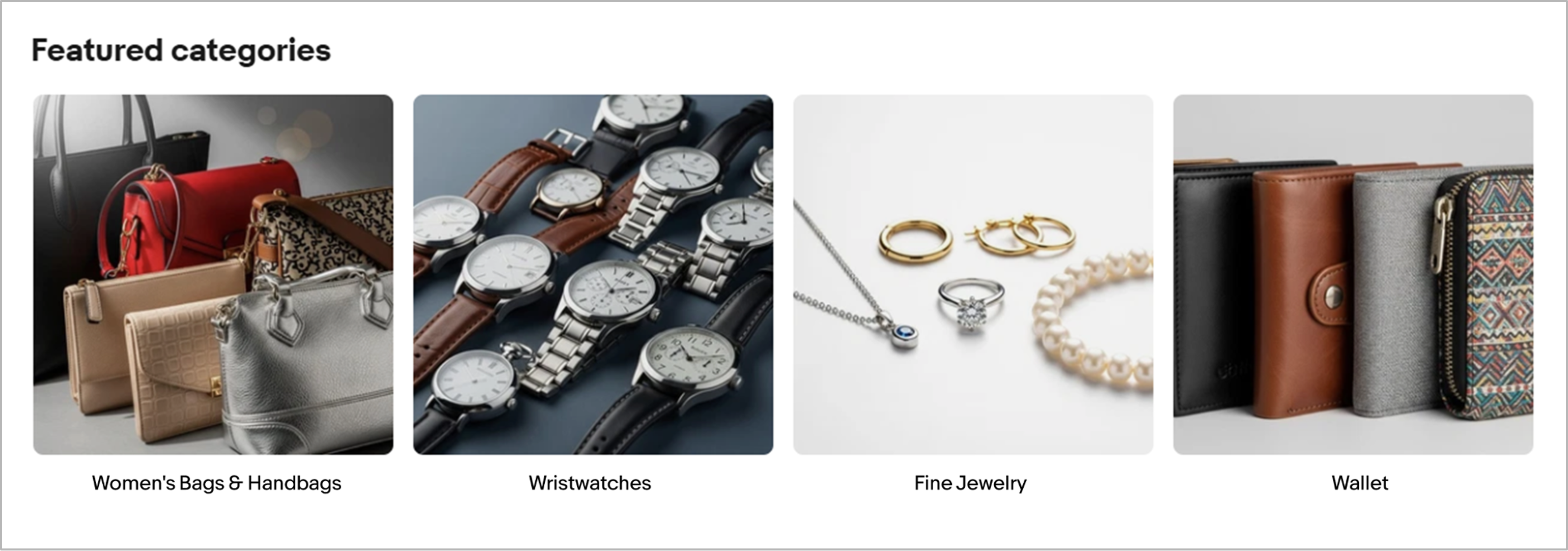 例:Women’s Bags & Handbags/Wristwatches/Fine Jewelry/Wallet など。