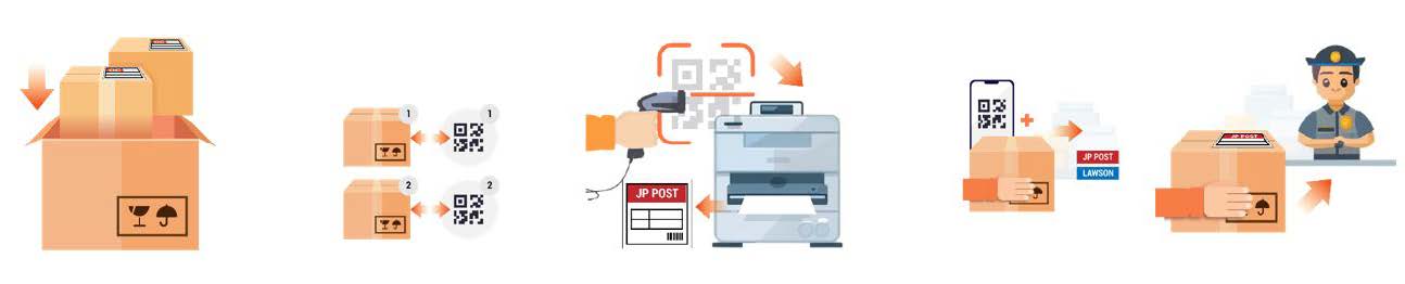 配送手続きは、お近くの郵便局またはローソンもしくは直送でOrange Connex社の日本国内の倉庫に送っていただくだけで実行できます。